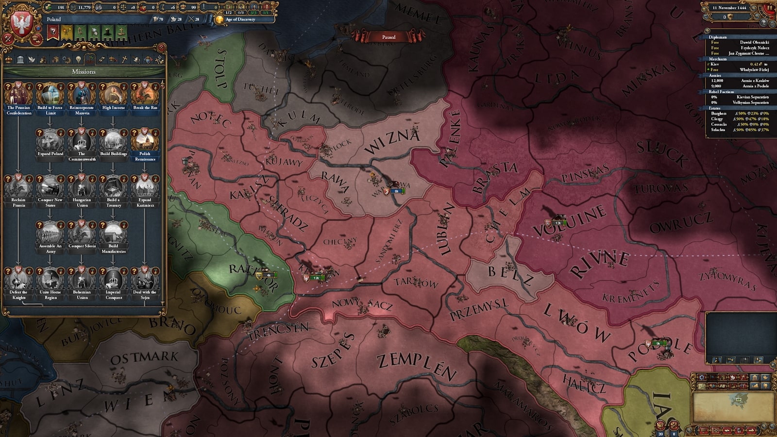 CHR_ideas = { start = { land_morale = 0.1 global_regiment_cost = -0.1 } bonus = { state_maintenance_modifier = -0.15 } trigger = { tag = CHR } free = yes chr_legacy_of_the_old_principality = { max_states = 3 } chr_cossack_regiments = { cavalry_power = 0.15 } chr_regimental_barracks = { global_manpower_modifier = 0.2 } chr_konotop_fortress = { defensiveness = 0.15 } chr_local_councils = { global_unrest = -2 } chr_renovate_transfiguration_cathedral = { tolerance_own = 2 } chr_cultivate_the_east_dniepr = { trade_goods_size_modifier = 0.1 } } chr_legacy_of_the_old_principality:0 "Legacy of the Old Principality" chr_legacy_of_the_old_principality_desc:0 "Chernigov was once the largest principality in Kievan Rus, and second in political importance only to Kiev itself. We are no strangers to the administration of lands that stretch far beyond our capital." chr_cossack_regiments:0 "Field Cossack Regiments" chr_cossack_regiments_desc:0 "We must adapt to the new reality of the steppes; the growing influence of the Cossacks. We must make agreements with them that guarantee their autonomy while ensuring their military service to the state." chr_regimental_barracks:0 "Expand Regimental Barracks" chr_regimental_barracks_desc:0 "To house both our native soldiers and the Cossack regiments we employ, we must expand our regimental barracks and implement a formal system of recruitment." chr_konotop_fortress:0 "Konotop Fortress" chr_konotop_fortress_desc:0 "We must construct a new fortress along the banks of the Konotopka river. It shall be a modern bastion, utilizing the latest engineering techniques and a model for our future fortification efforts." chr_local_councils:0 "Local Governance Councils" chr_local_councils_desc:0 "The needs of each locality in our realm can differ wildly, and it can be difficult to administer them with a common policy. We should encourage local councils to govern themselves to an extent so that they can attend to their own needs." chr_renovate_transfiguration_cathedral:0 "Renovate the Transfiguration Cathedral" chr_renovate_transfiguration_cathedral_desc:0 "As the oldest remaining structure in the city, the Transfiguration Cathedral is a reminder of past glories as well as a symbol of our enduring faith. The Cathedreal should be renovated, symbolizing a renewal of our ambitions and spiritual dedication." chr_cultivate_the_east_dniepr:0 "Tame the Grasslands" chr_cultivate_the_east_dniepr_desc:0 "The left bank of the Dnieper could be the breadbasket of Europe, if only the wild grasslands could be tamed. We must invest in the region's cultivation so that its full potential can be realized."