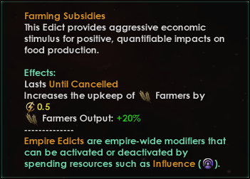 Tous les Édits n’utilisent pas du potentiel d’Édit. Seul ceux qui ne sont pas limité par le temps le sont. L’activation ou la désactivation de ces derniers coûtera une ressources la plupart du temps de l’influence. Ainsi ces coûts vous seront répercuter que lorsque vous changerez les priorités et non à tout moment.