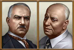 Nous avons ici les deux successeurs les plus probables de l'héritage kémaliste après le décès du père des Turcs : İsmet İnönü et Fevzi Çakmak. Le chemin de gauche - non aligné - de İsmet İnönü est accessible par le biais du focus « La Paix à la maison ». Cette voie vous verra tenter de jongler et d’apaiser chaque camp, bien que vous ne soyez pas capable de satisfaire tout le monde. La voie de la droite - non alignée toujours - de Fevzi Çakmak est accessible par le biais du focus « Revitaliser le nationalisme turque ». Cette voie sur concentre sur l’apaisement des traditionnalistes sans trahir l’idéologie kémaliste. Fevzi Çakmak peut en outre jouer le rôle d'un dictateur fasciste à la Francisco Franco par le biais du focus « La Patrie avant tout ! »