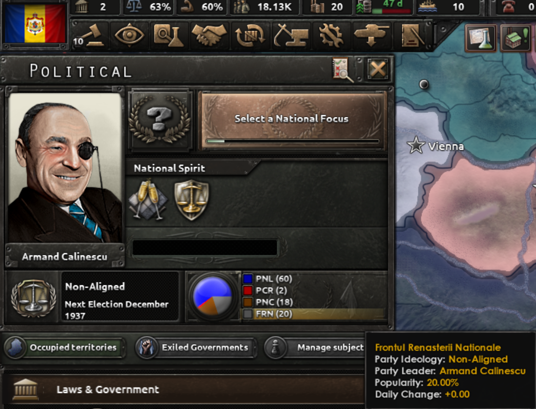 Ce que cela signifie pour le joueur, c’est qu’à partir du moment où il prend le focus « Garde de Fer », Ion Antonescu deviendra la figure de proue du parti fasciste et le PNC sera rebaptisé « Garda de Fier ».