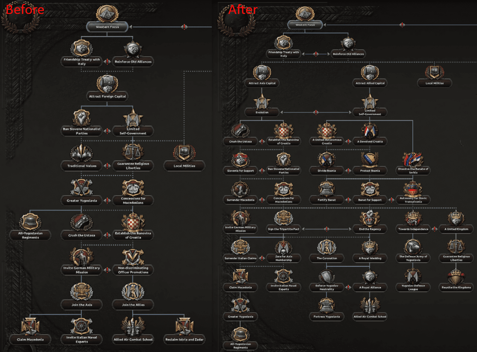 , tout en améliorant la qualité générale de l'arbre de la Yougoslavie pour donner aux joueurs plus d'options pour explorer les voies historiques et les voies alternatives.