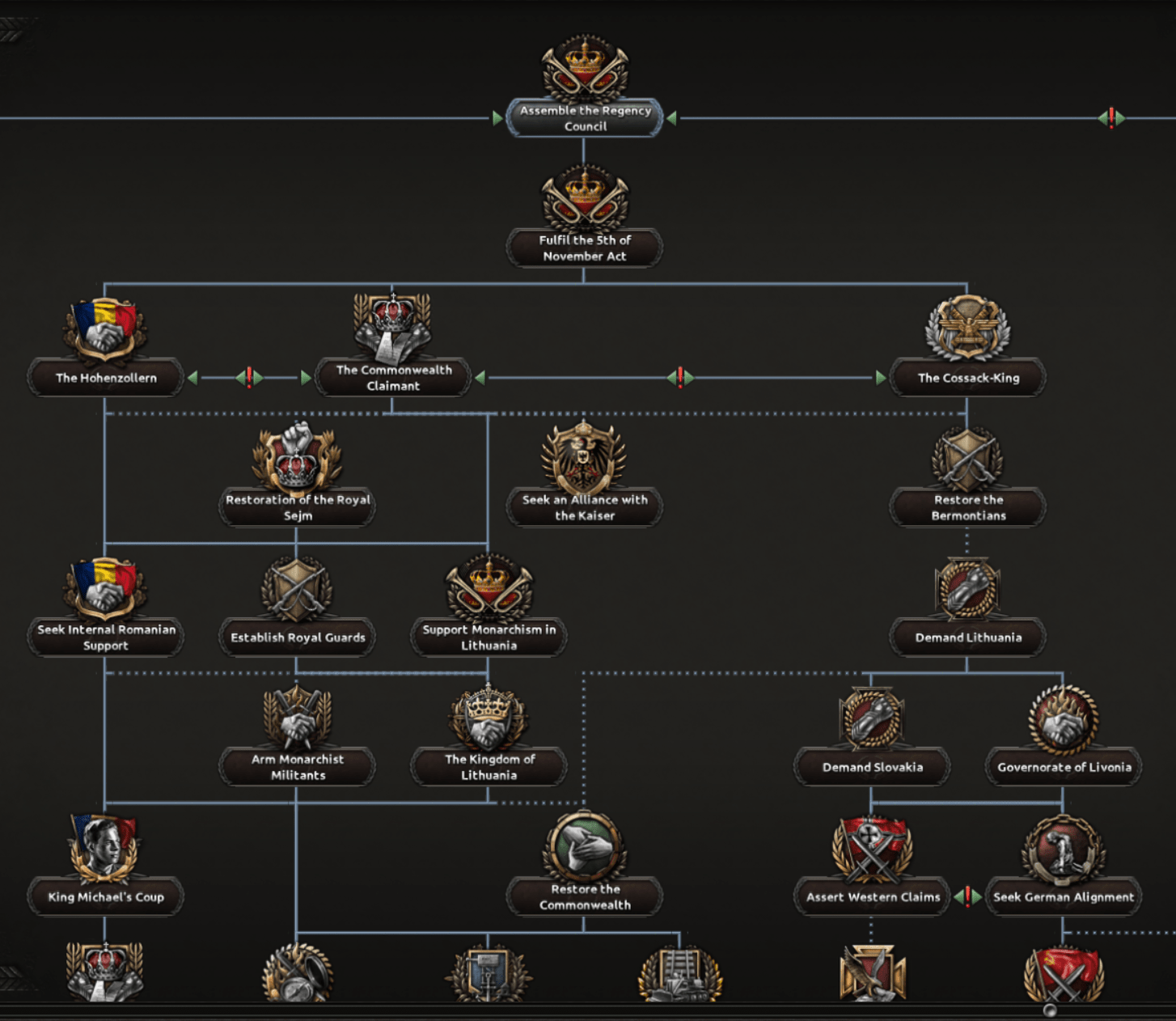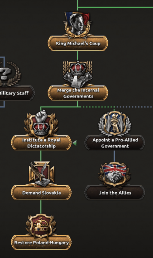 Avec le roi Michael sur le trône de Pologne, les royaumes pourront s’unir dans de bonnes circonstances. Ce sera possible soit par l’intervention Polonaise soit par la Roumanie en complétant “Le coup d'État du Roi Michael”. La Roumanie et la Pologne seront ainsi unifiées, alliant leurs forces pour devenir un puissant rempart contre l’Axe et les Communistes.
