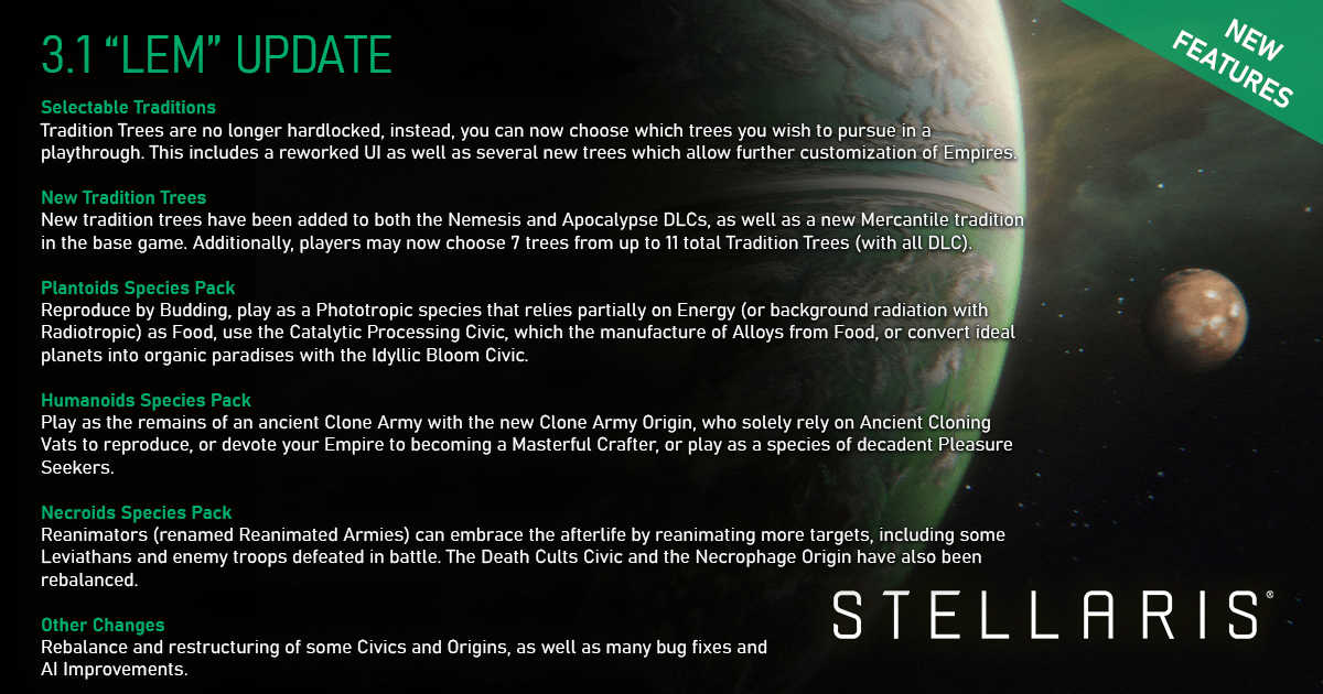 Stellaris, carnet des développeurs n°222 : La mise à jour 3.1 "Lem".
