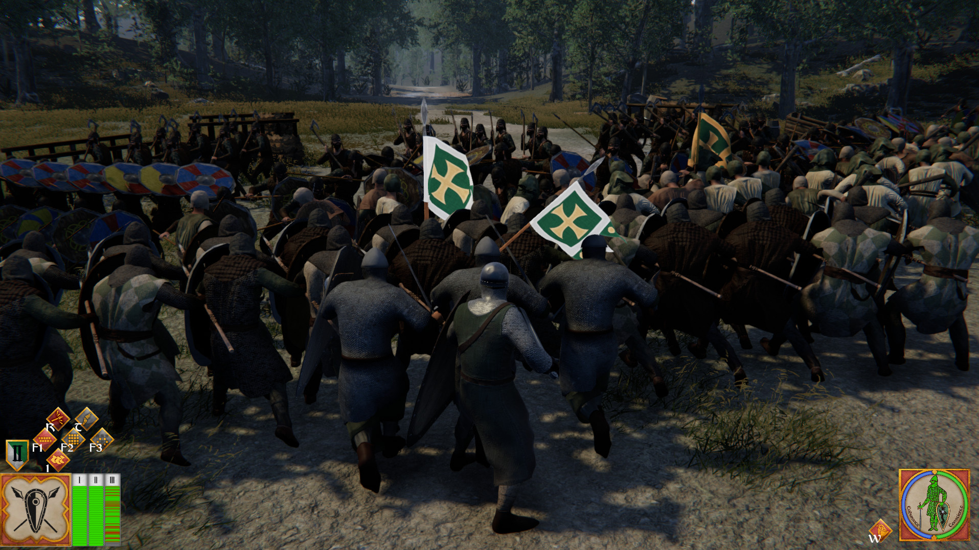 Une fois que tout est préparé, on peut choisir le champs de bataille sur lequel on affrontera différents adversaires, pour commencer je recommande de taper du paysan en révolte, c'est moins violent que le viking. La gestion des troupes sur le champs de bataille rappelle celle d'un Mount & Blade, pour passer d'une unité à l'autre pour les commandes on utilise soit espace, soit espace (en vrai le pavé numérique 1,2,3 mais c'est pas pratique). ensuite c'est F1, F2, F3 pour la formation a adopter et on peut leur ordonner d'utiliser des compétences comme pousser d'un coup, de tirer leurs munitions si ils en ont, de rester en position défensive ou encore de nous suivre. Activer les compétences de leur bannière ou de leur corne et ils gagneront un bonus temporaire. Il est très important de bien positionner ses troupes et d'essayer de contourner pour briser efficacement l'ennemi avec peu de perte, vous avez besoin de conserver au maximum votre nombre.
