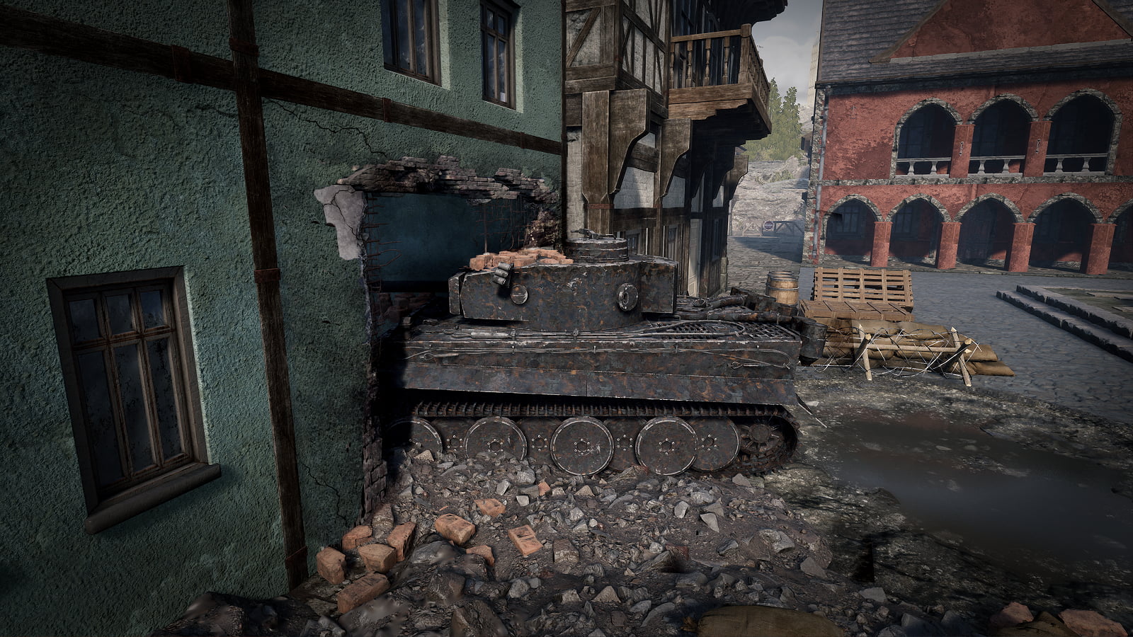 Une autre tâche consiste à retirer l'épave d'un char qui est encastrée dans le mur d'un bâtiment dans une petite ville de l'autre côté de Ren. La tâche consiste à extraire ledit char, à le découper en morceaux et à le recycler pour le reconstruire.