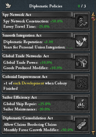 Ainsi, tout ce qui concernait les compagnies de mercenaires dans les doctrines Administratives a été supprimé (coût de recrutement, d'entretien ou réserves des compagnies) pour être remplacé par de nouveaux bonus qui siéront mieux à ce groupe (coût des conseillers, coût de gouvernance des états, nombre de cultures promues, etc).