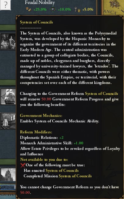 . Contrairement à ce qui est affiché dans la capture d'écran ci-dessous, son augmentation dépendra de votre autonomie provinciale et du désir de liberté de vos dépendances. Selon le degré de consensus dans votre pays, vous profiterez d'un bonus de splendeur et d'efficacité administrative.