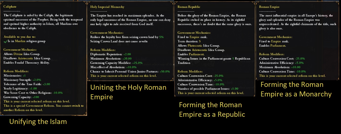 Et pour finir, deux réformes génériques de niveau 1 pour les monarchies et les républiques :