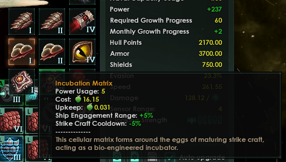 Les vaisseaux biologiques, y compris les bases stellaires, les mégastructures et les stations, voient leur ressource de construction principale convertie d’alliages (ou de minéraux) en nourriture et leur entretien d’énergie est également remplacé par de l’entretien de nourriture.