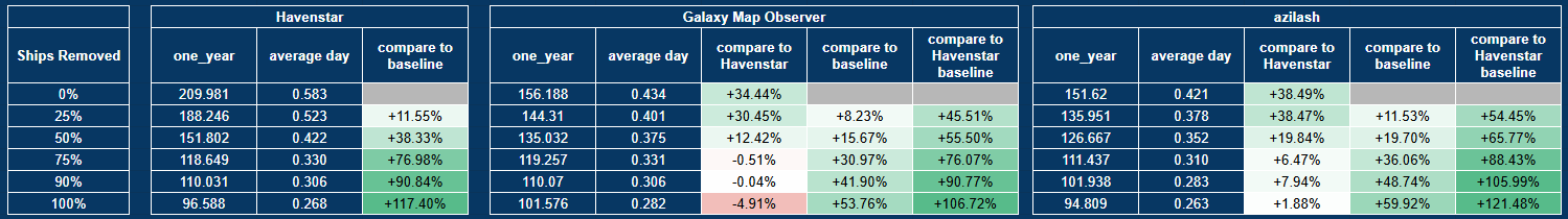 Ce changement a réduit le nombre de navires en milieu et en fin de partie d’environ 25 %, avec certains des avantages attendus, mais le durcissement inhérent et le changement de la valeur relative des navires ont également un effet intéressant sur le fait de rendre les armes de contournement moins oppressantes. La prochaine itération de cette expérience sera plus extrême et augmentera la différence entre les rangs - j’aime bien l’effet qu’elle a de rendre les navires et les flottes individuels plus importants.