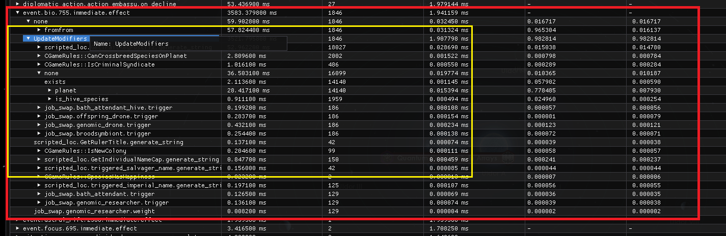 La vérification UpdateModifiers qui a lieu tous les mois détériore fortement les performances et provoque le bégaiement du jeu sur le tick mensuel