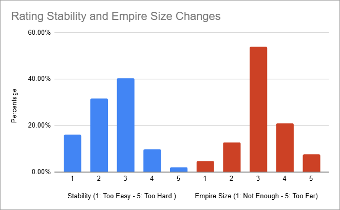 Le consensus général semble être que la Stabilité élevée reste trop facile à maintenir dans la Bêta Ouverte, et beaucoup d’entre vous étaient assez satisfaits des changements apportés à la taille de l’Empire.