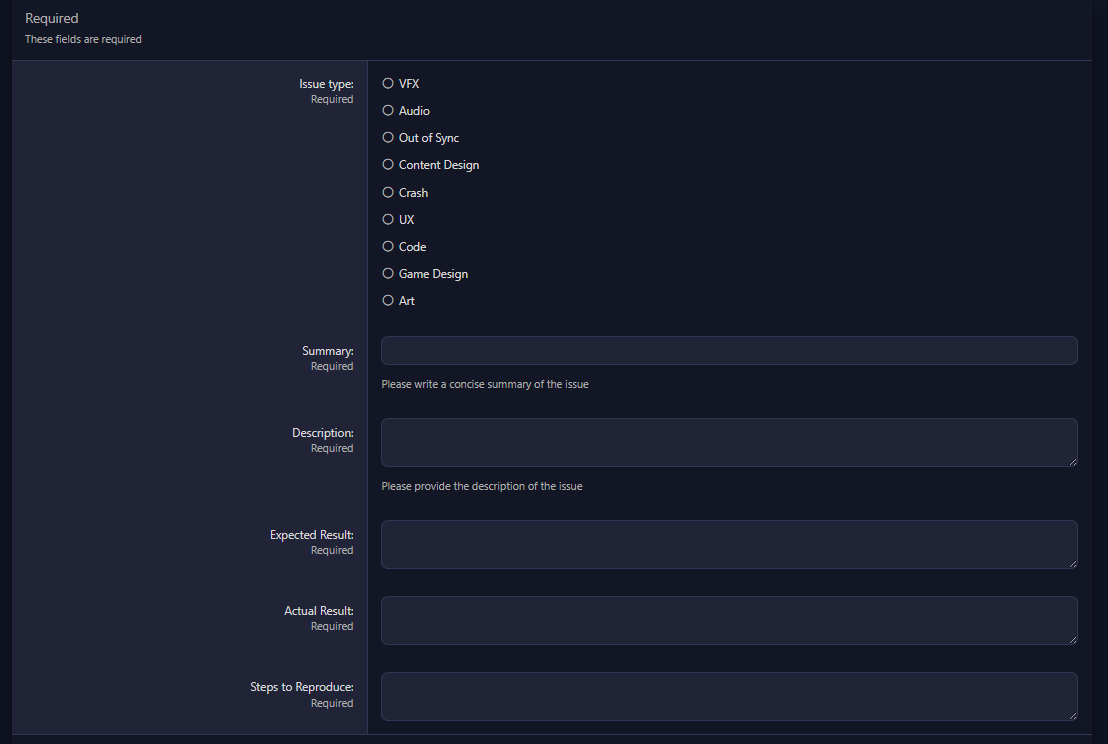 Voici le nouveau formulaire de rapport de bug, qui a été modifié pour mieux correspondre aux champs de notre suivi interne de bugs.