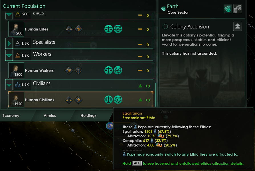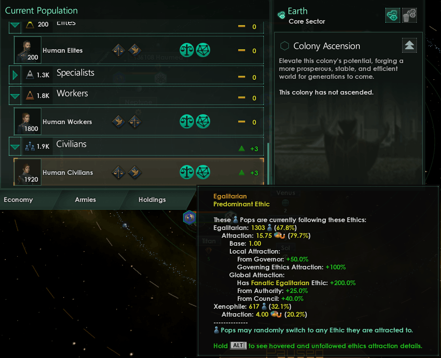 En plus de réduire le nombre global de groupes de pop, les populations devraient mieux osciller entre éthique et factions qu’auparavant. Comme il touche un grand nombre de systèmes, nous considérons que c’est un changement risqué et nous aimerions voir la bêta ouverte détecter des problèmes.