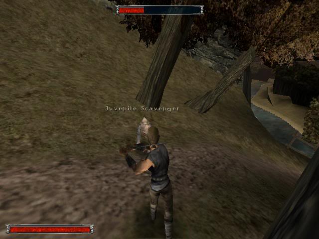 Comme vous avez pu le voir dans mon récit, vous êtes un pauvre bougre qu’on balance dans une prison à ciel ouvert entourée par un champ de force, sans armes, sans armure, et complètement vulnérable. Vous vous retrouvez dans un monde largement hostile, où n’importe quelle créature est capable de vous dépecer sans aucun problème. Et on ne vous parle pas des humains. La première ville est d’ailleurs un modèle du genre : les gardes essayent de vous racketter, des malandrins protégés par les gardes vous frappent pour récupérer votre argent et votre équipement. Vous allez apprendre à courir, ce qui est une stratégie parfaitement viable dans ce jeu. Mention spéciale à un des protagonistes du jeu qui vous force à servir tous les jours des bouteilles d’eau à des cultivateurs si vous ne voulez pas qu’il s’occupe de vous. Courez et courez encore.
