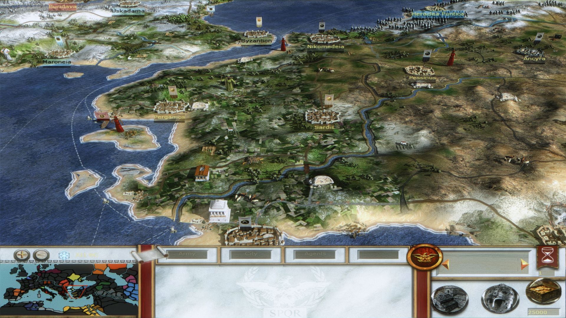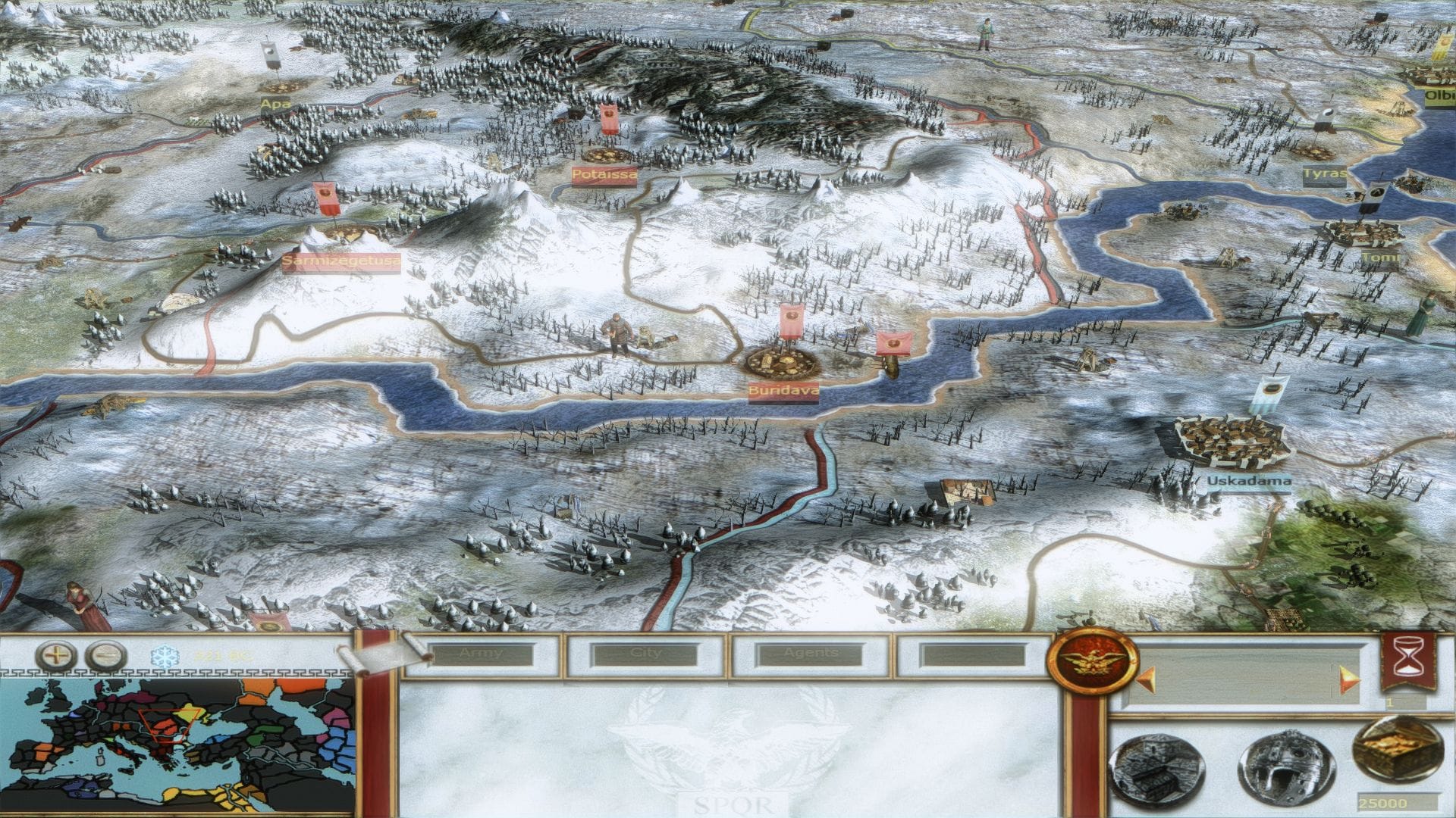 dans l'Antiquité, plus précisément durant la période de 240 av. J.-C à 117 ap. J.-C (à la mort de l'empereur Trajan). Toutes les unités et toutes les communautés ont été remodélisées et retexturées de façon historique. La carte a été entendu à l'est jusqu'au Golfe du Bengale et tous les agents ont été changés pour correspondre à la période du mod. De nombreux scripts et une nouvelle IA viennent parachever le projet, sans oublier bien sur les nouvelles batailles historiques.