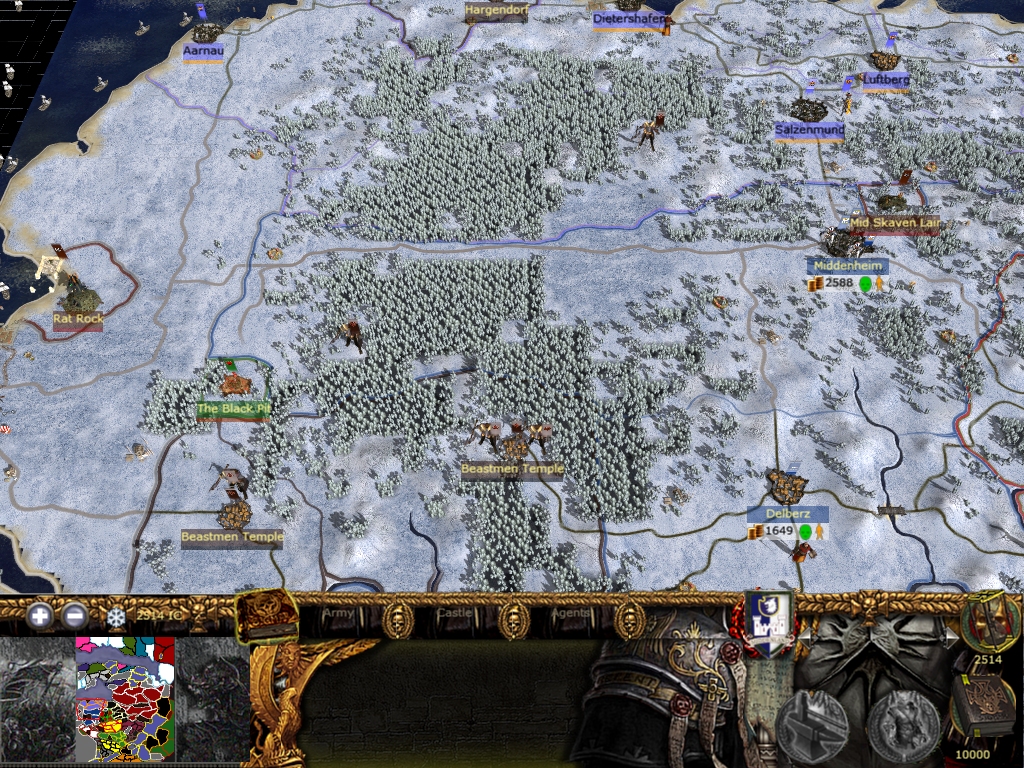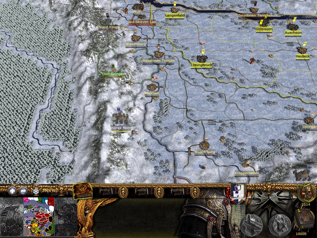 Salut, j'ai télécharger ce mode y a pas longtemps. J'ai commencé une partie avec le grand-duché de Middenland. Mes alliés au nord de ma position, les Nordlands, se sont fait tués par les elfes noirs avec lesquels je suis entré en guerre. Lorsque je reprends la capitale de mon ex-allié, on me demande si je veux bien rendre la ville au peuple de Nordland. Je me suis dit pourquoi pas et j'ai accepté. On m'a alors demandé de quitter la ville ce que j'ai fait. MAIS!!! le tour suivant la ville devient rebelle et l'empereur me déclare hors-la-lois!!!! 90% de mes troupes ont alors déserté! je suis revenu en arrière et plutot que de quitter la ville je suis resté mais le résultat est pareil on me déclare hors-la-lois! Quelqu'un aurait une solution à me proposer? Parce survivre avec juste une ou deux untés dans chaque ville j'y crois pas trop