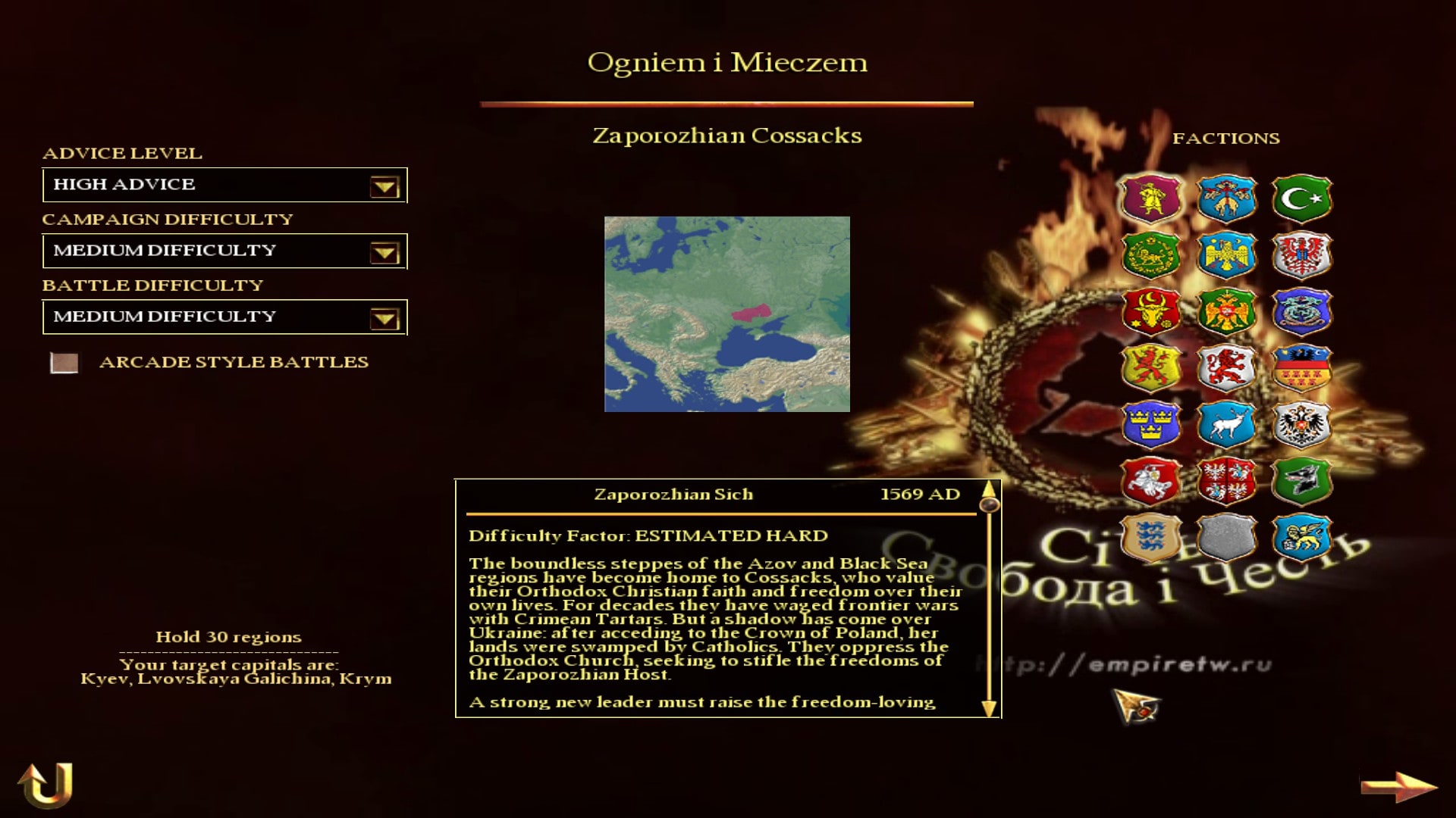 Déjà, la République des Deux Nations est divisée en deux factions dans le mod, bien qu'elles soient alliées et sous une forme de gouvernement commun. Après, je ne suis pas encore allé très loin dans la campagne, et je préfère jouer avec les Cosaques .