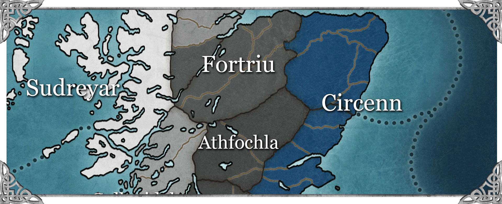 Scoan, la capitale de Circenn, fut autrefois la demeure de la légendaire Pierre du Destin, il est dit qu’elle confère une force divine à son peuple. Où la pierre réside actuellement est un mystère, mais si des indices pouvaient être trouvés, il est sûr que le retour de la pierre serait une aventure digne d’être entreprise.